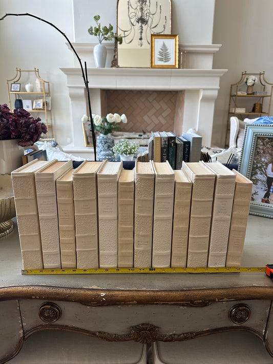 6 Vol. Light Blue Leather Bound Decorative Books in 3 Shades of Antique White