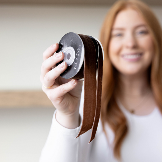 Velvet Ribbon - Brown | 3/8" & 1" Widths | 15 Foot Roll