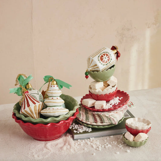 Stoneware Scalloped Plate 8" - Red, Green & White