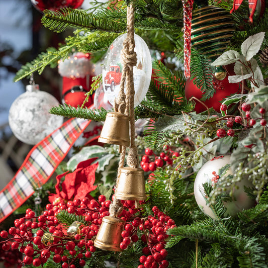 12-1/2"H Hanging Metal Bell Cluster with Jute Rope, Antique Brass Finish