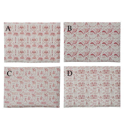 Red and White Christmas/Holiday Wrapping Paper Sheets, 4 Styles