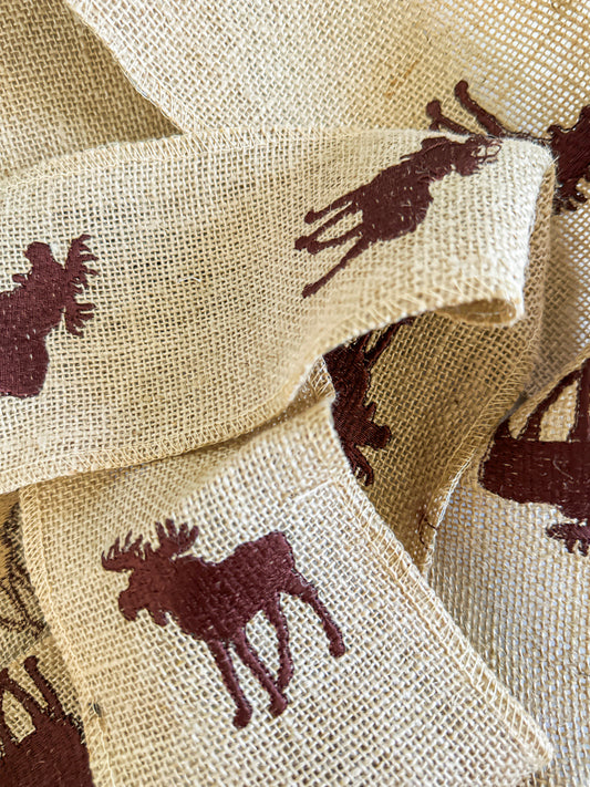 4" Burlap Ribbon with Moose Embroidered