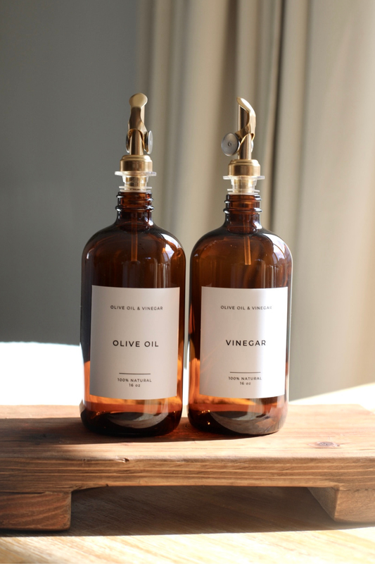 Amber Glass Dispenser for Olive Oil & Vinegar - Refillable Bottles