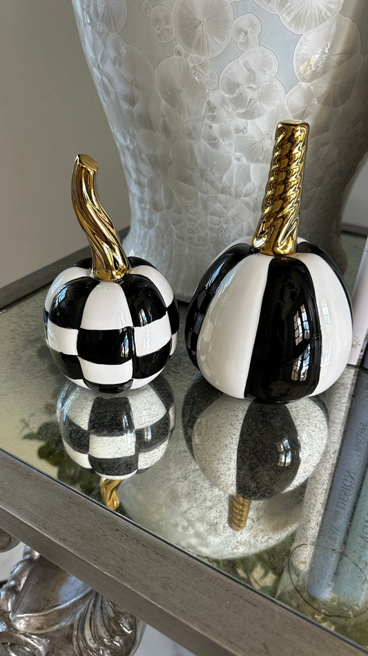 6.75 Inch White & Black Checkered Ceramic Pumpkin