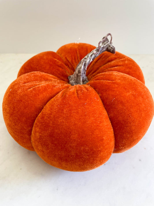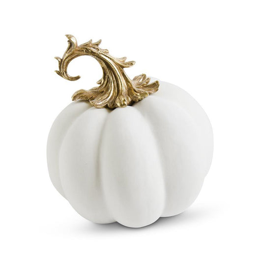White Velvet Pumpkin w/Gold Filigree Stem - 3 sizes