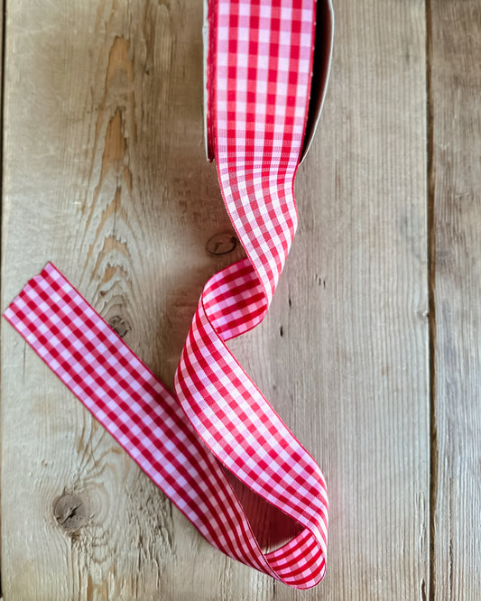 1 1/2" Gingham Check Ribbon - Red/White - 25 Yard Roll