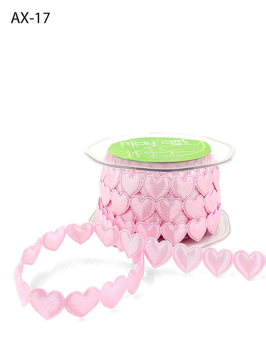 3/4″ Puffy Satin Heart Shape Ribbon with Cut Sealed Edge in PInk or Red