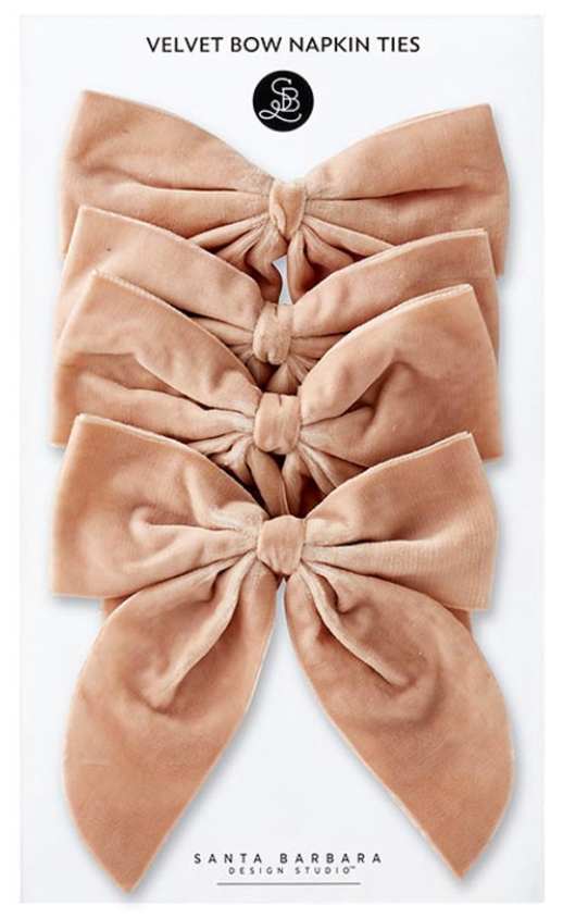 Velvet Bow Napkin Ties - Blush - Set of 4