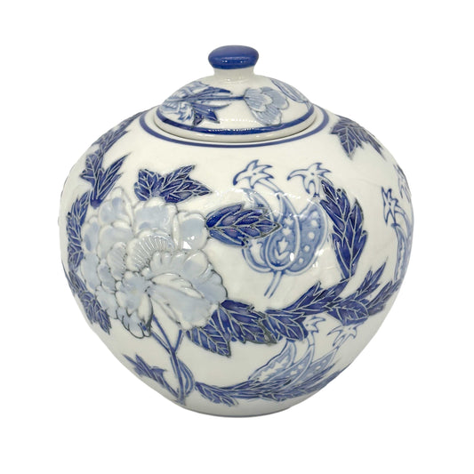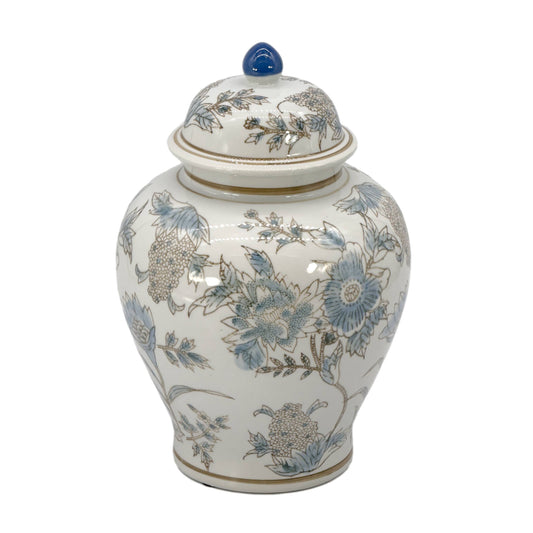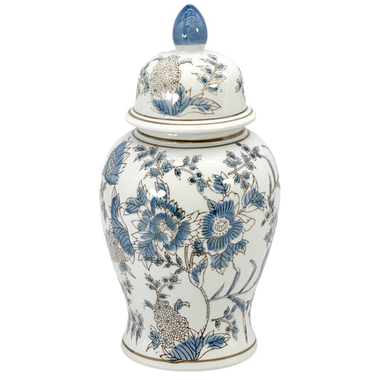 Blue & White Floral Ceramic Chinoiserie Ginger Jar 8"