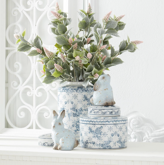 Weathered Blue Terracotta Bunny Figurines - 2 Styles