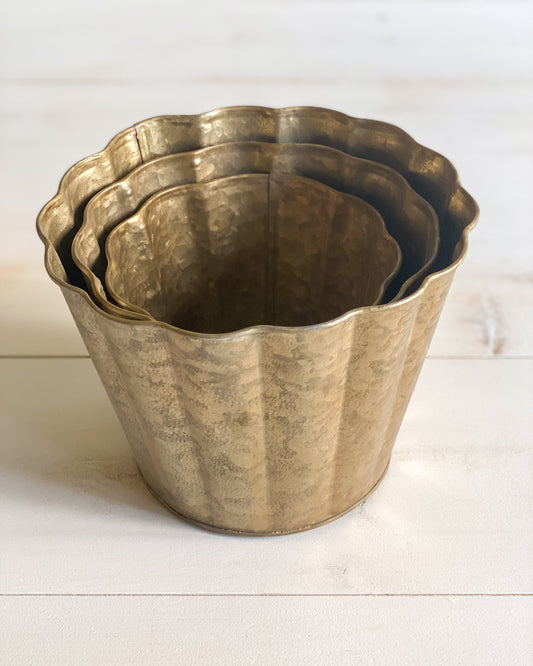 Gold Metal Scalloped Planters - 6 Sizes
