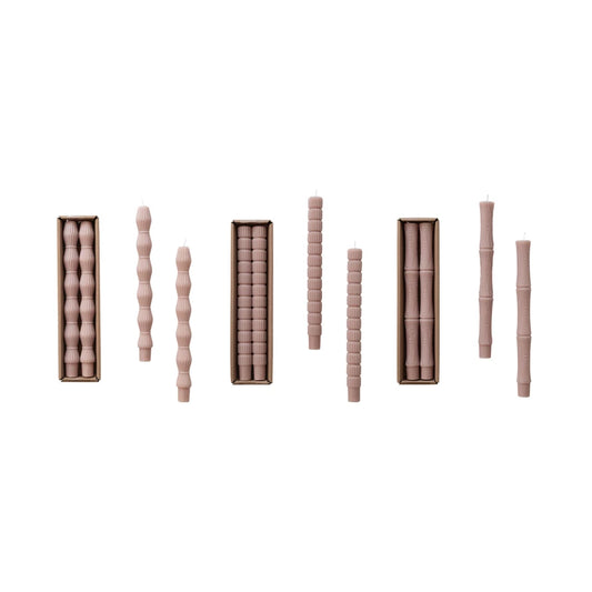 Unscented Sculpted Taper Candles, Khaki Color, 3 Styles, Set of 2
