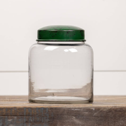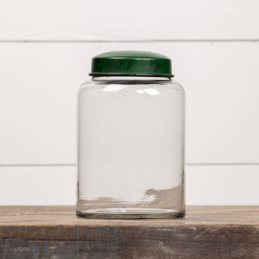 7.5" CLEAR GLASS JAR W/ GREEN LID
