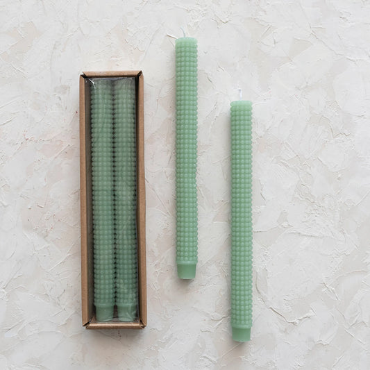 Mint Unscented Hobnail Taper Candles in Box, Set of 2