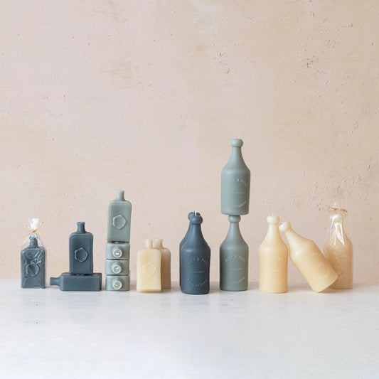 Unscented Embossed Vintage Bottle Shaped Candle, Grey