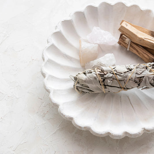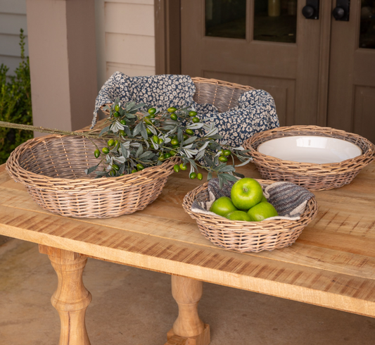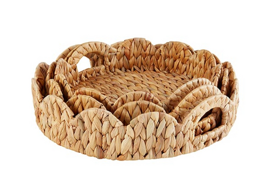 Decorative Round Braided Bankuan & Rattan Trays w/ Scalloped Edge & Handles, 3 Sizes
