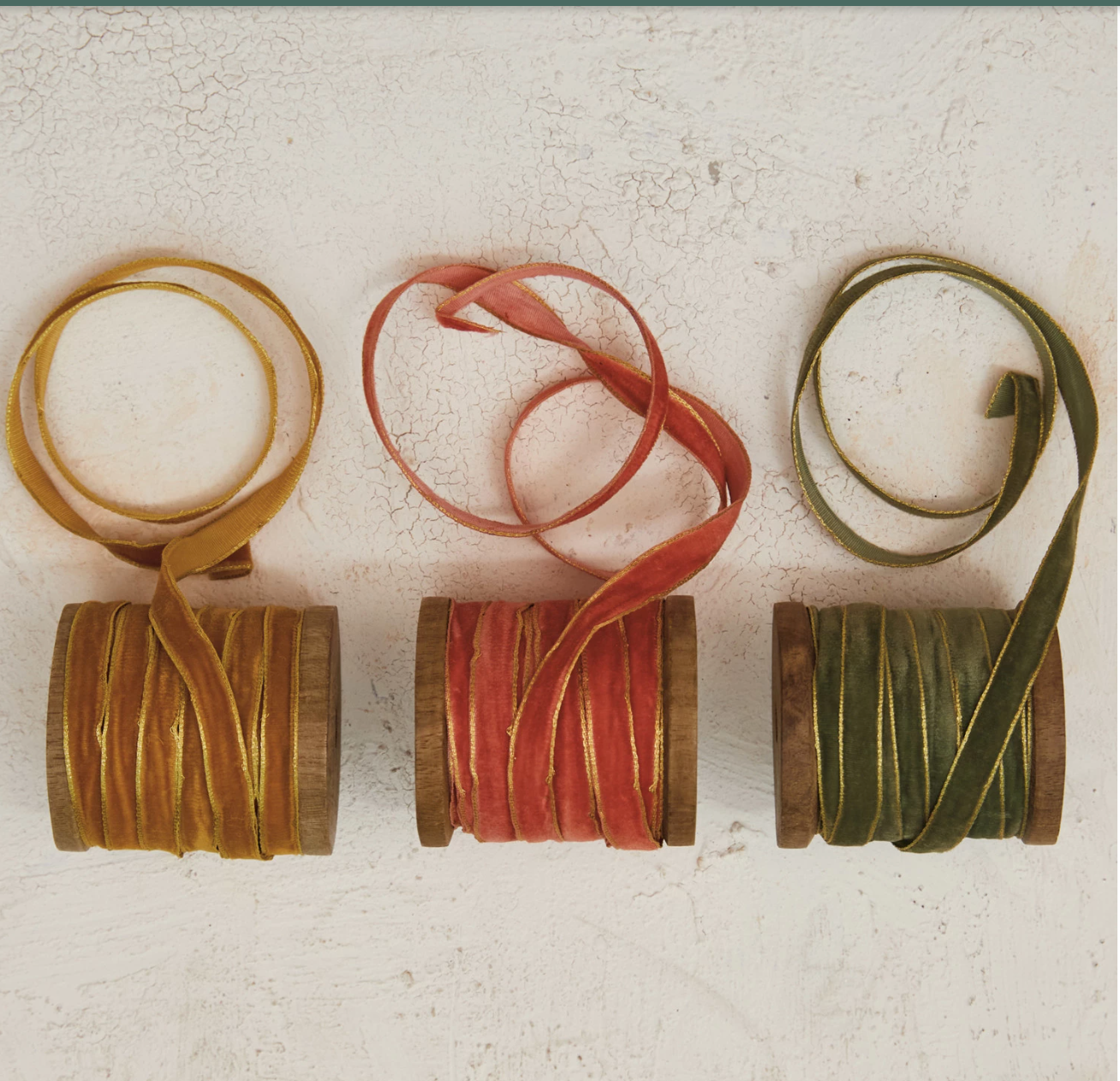 10 Yard Velvet Ribbon on Wood Spool, 3 Colors