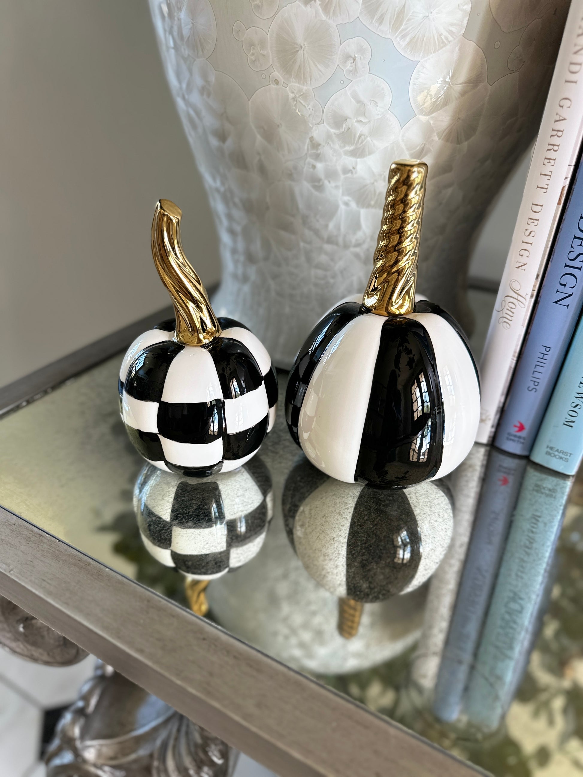 6.75 Inch White & Black Checkered Ceramic Pumpkin