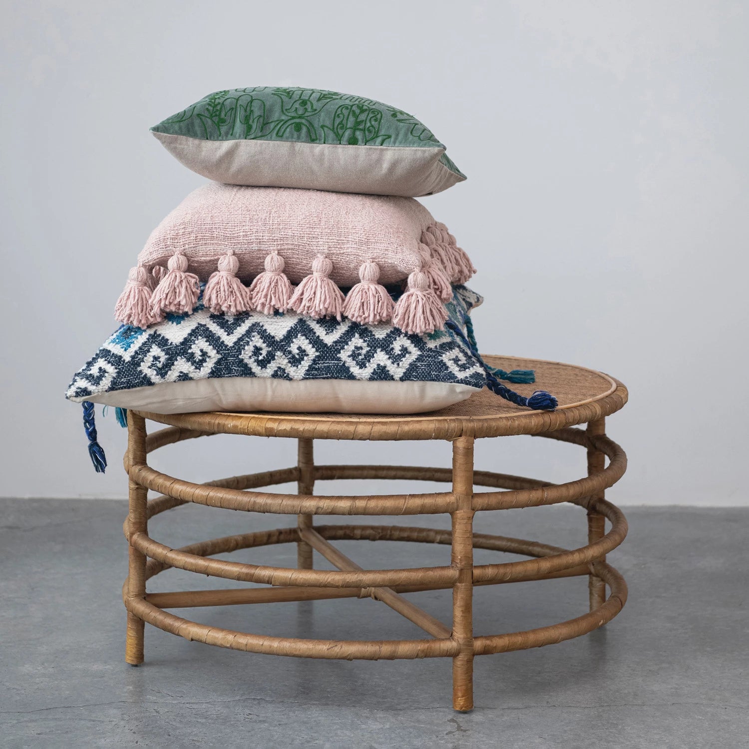 Cotton Slub Pillow w/ Tassels Dusty Pink