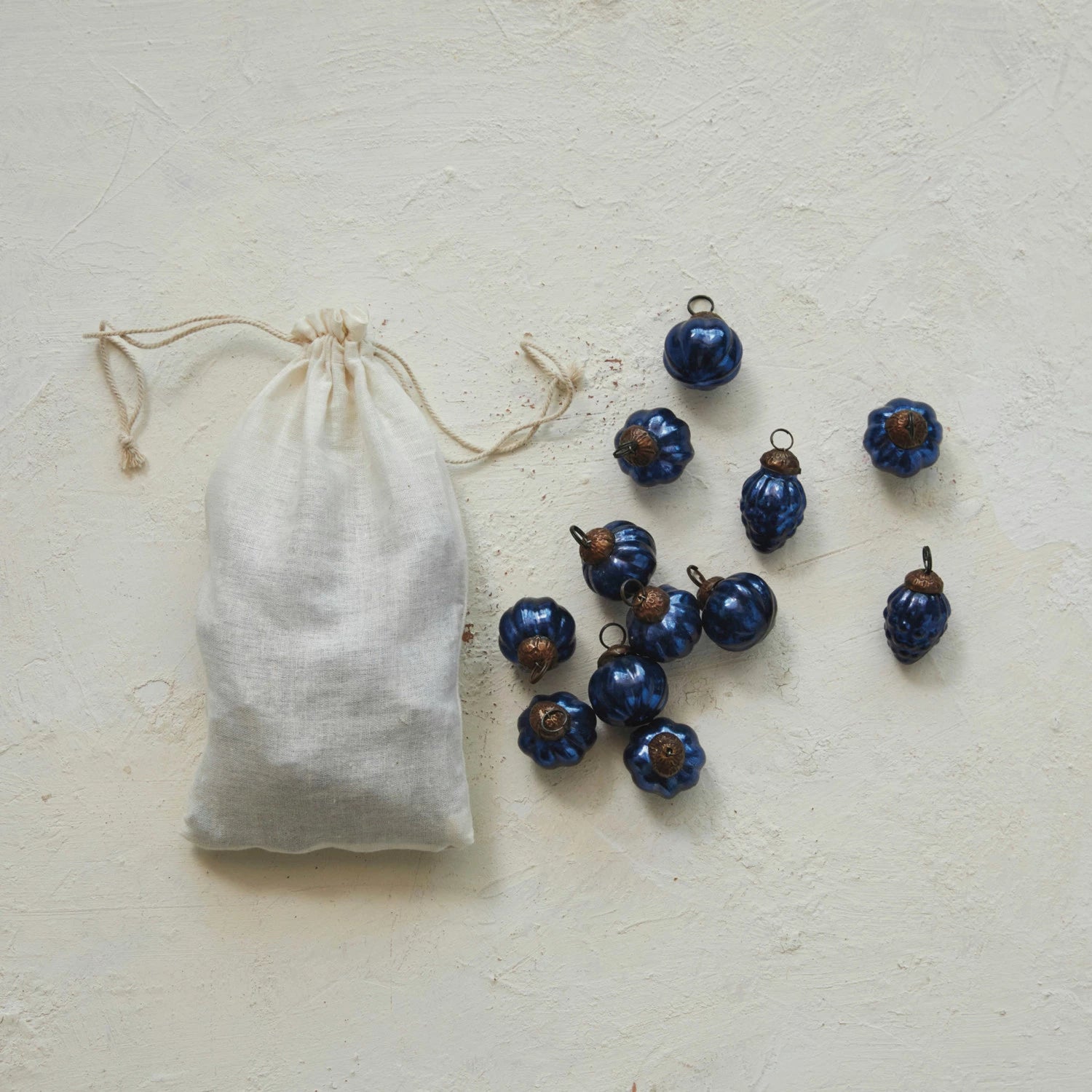 Embossed Recycled Mercury Glass Ornaments in Muslin Bag, Set of 36