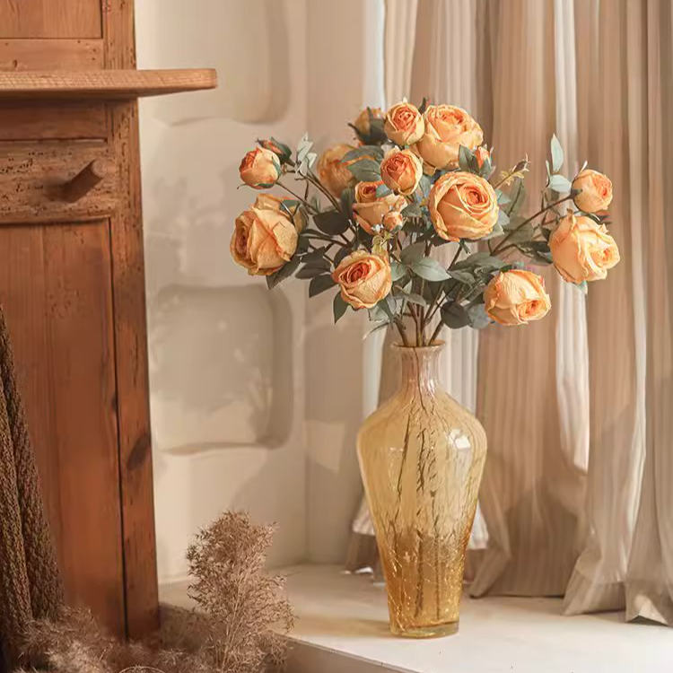 Faux Silk Artificial Flower - Handmade Silk Flower Stem FLOWER Rose DIMENSIONS AND NUMBER OF BLOOMS 25.2" Tall; Three flower blooms and two flower bud per stem MATERIAL Silk Cloth, plastic COLOR Goldend Yellow or pink