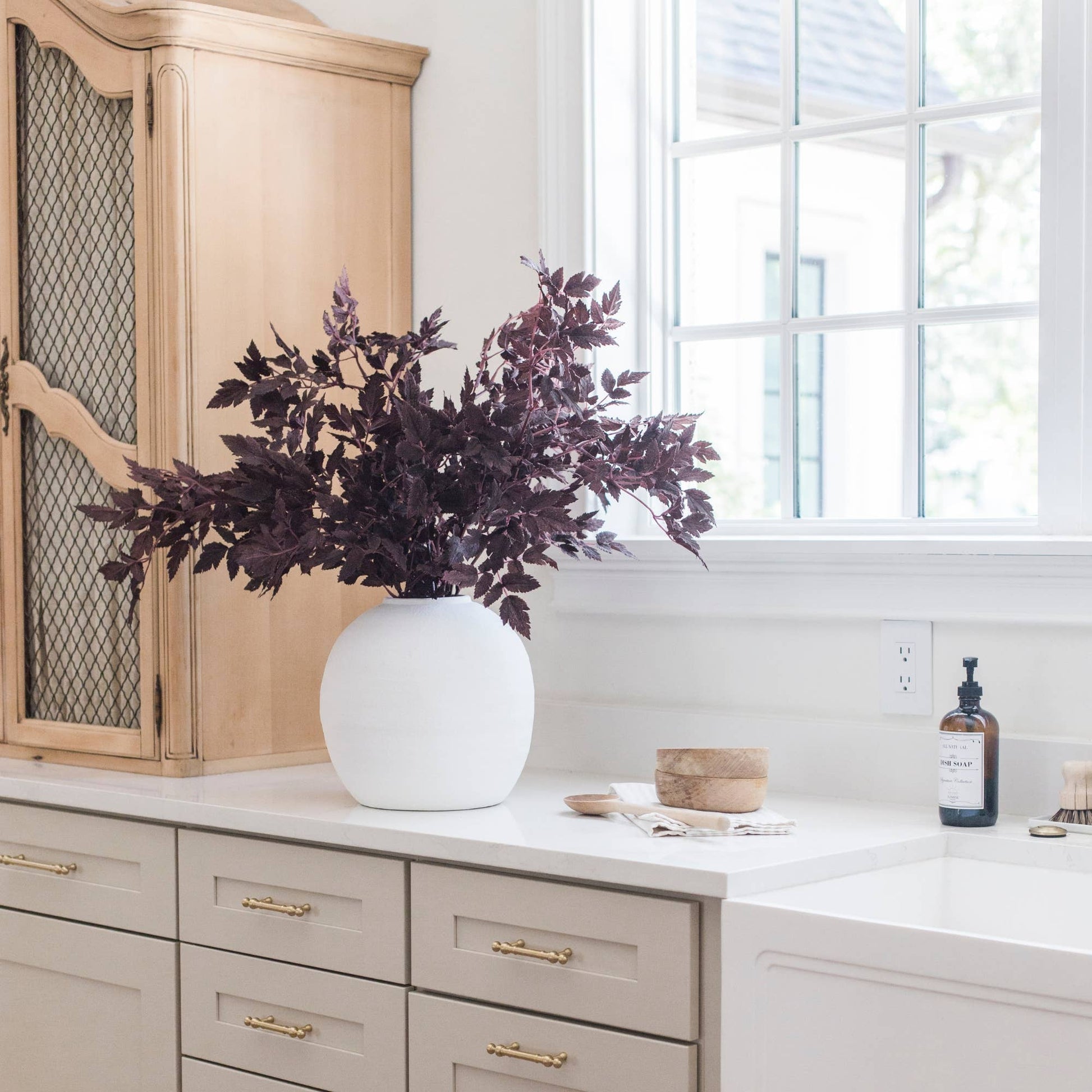 Bring natural elegance into your space with Afloral’s viral home decor favorite—the Cimicifuga Ramosa Plant Leaf Spray. This premium artificial plant stem is both versatile and beautifully realistic, featuring designer faux greenery with finely detailed, textured leaves in rich plum-purple tones that mimic the distinctive look of the Cimicifuga plant. A go-to choice for stylists and home decorators, this botanical spray effortlessly elevates interiors with lifelike faux greenery that lasts. Style several sprays in a tall vase for a sculptural statement, or layer these leaves into a larger faux floral arrangement to introduce drama, texture, and an earthy richness to any space. - 31" Tall x 15" Wide - Main Stem, 10" Tall - 180 Leaves, 1-3" Long - 40% Fabric, 30% PE Plastic, 10% Iron Wire, 10% Glue, 10% Color Paste