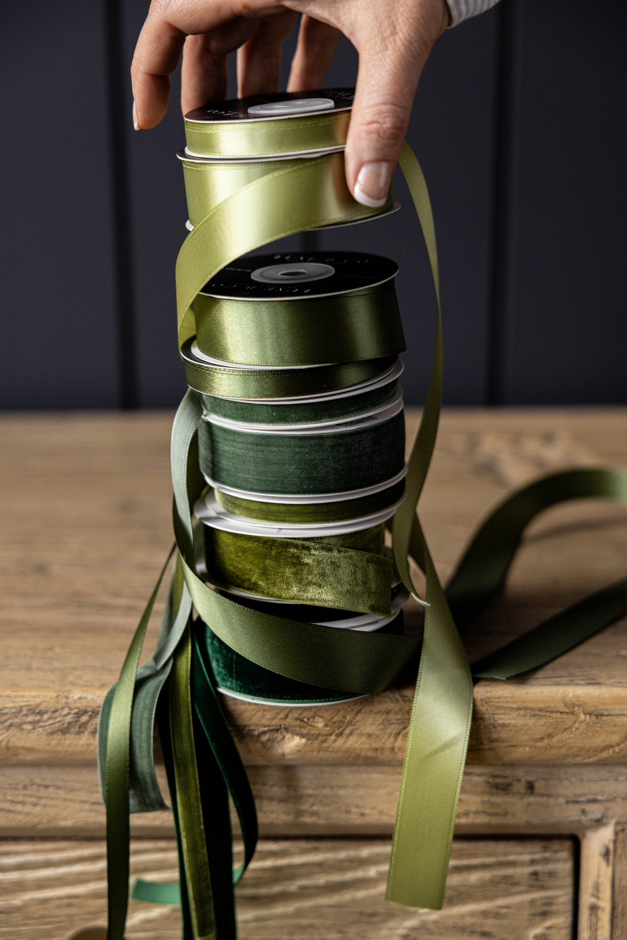 Elevate your seasonal presentations with this luxurious sage satin ribbon. The petite 0.35" or approximately 1/3" width x 180 inches. Crafted with meticulous attention to detail, this versatile accent transforms gift wrapping, floral arrangements, and holiday displays into polished, gallery-worthy compositions. A timeless choice for discerning decorators seeking that coveted designer finish.