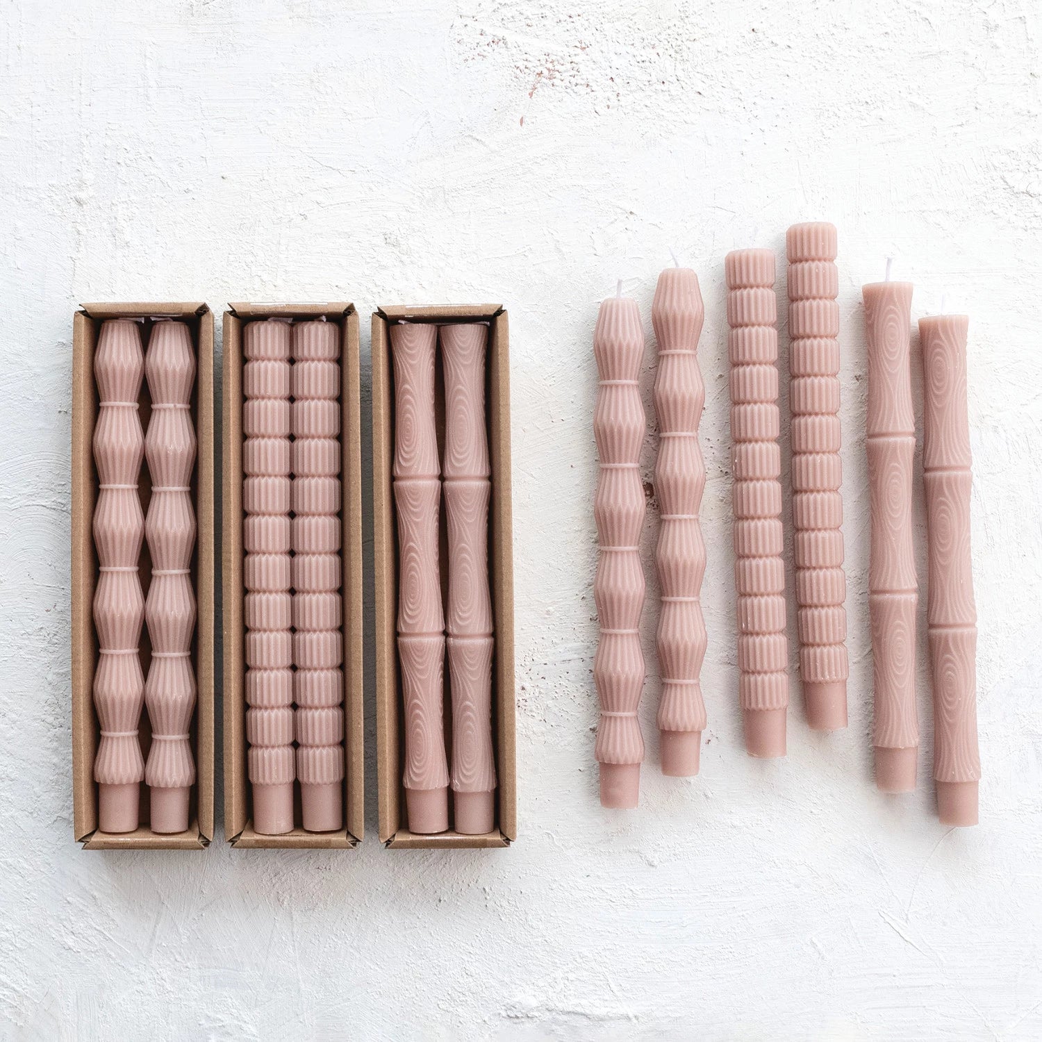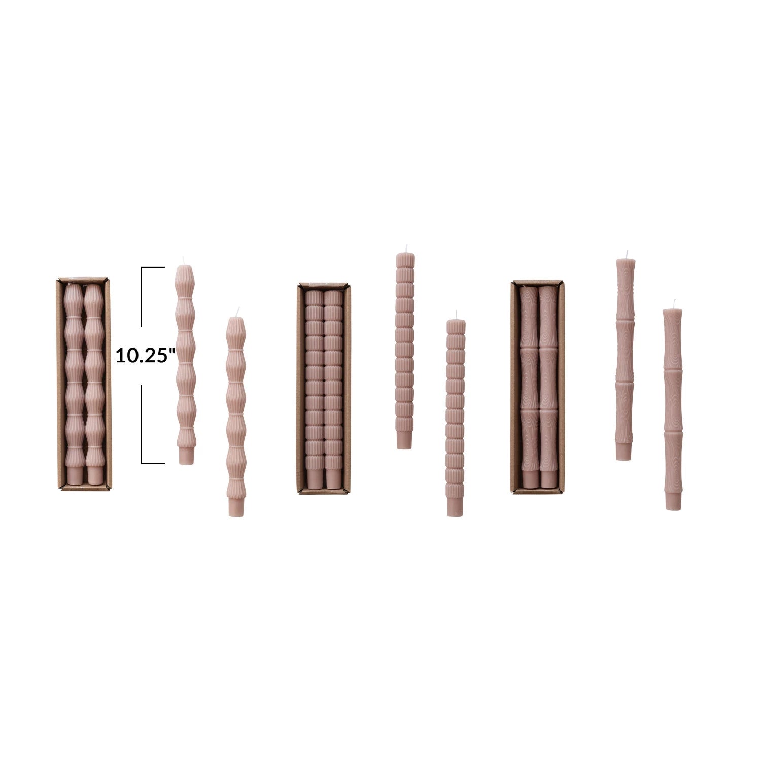 Unscented Sculpted Taper Candles, Khaki Color, 3 Styles, Set of 2